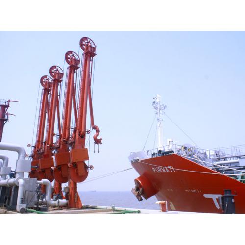 船用流體裝卸臂又稱輸油臂,用于碼頭和槽船的管道系統(tǒng)之間傳輸液態(tài)或氣態(tài)產(chǎn)品,是一種****、安全的油品碼頭裝卸設備。 1、當處于空載狀態(tài)時,整個臂在所有位置取得****平衡,設備操作輕便。 2、介質(zhì)傳輸?shù)倪^程中,裝卸臂在槽船正常漂移范圍與船隨動。 3、可通過范圍檢測系統(tǒng),在槽船集管漂移出正常范圍時發(fā)出聲光報警。 4、旋轉接頭結構設計為可拆卸式,當更換密封圈時無需拆卸整臺臂,而可實現(xiàn)輕松更換。 5、液壓驅(qū)動船用裝卸臂系統(tǒng)由裝卸臂、電氣控制設備、液壓控制設備三部分組成。 FB型自支撐式裝卸臂: 1、操作簡便、自重輕、占地空間小、風載荷小。 2、管道既作為介質(zhì)的通道,要承受介質(zhì)的壓力,還要承受自身的結構載荷、風載荷和彎矩;采用較大的旋轉接頭以承擔內(nèi)外部載荷和所有彎矩,立柱、耳軸和高點處旋轉接頭滾道均進行淬硬處理,在裝卸過程中,僅有內(nèi)、外臂的介質(zhì)總量和風載荷作用在槽船法蘭上。 3、適用于手動操作****理想的小噸位碼頭。 RC型獨立支撐式裝卸臂: 1、結構合理、經(jīng)久耐用,具備在線檢漏功能,維護保養(yǎng)簡便易行、易于更換密封圈,而且旋轉接頭型號統(tǒng)一,密封件可以互換,減少了備件量。 2、獨立支承結構,采用與旋轉接頭同軸回轉的大直徑回轉支承來承擔結構載荷、風載荷和彎矩,工藝管線、旋轉接頭只承受介質(zhì)壓力。 3、符合**嚴格的設計規(guī)范,而且在頂部和耳軸箱處安裝可拆式彎頭,從而不需要使用重型起重設備能夠進行密封的更換。適用于幾乎所有的碼頭。 4、電液控制部分裝卸臂控制部分由電氣和液壓兩大系統(tǒng)組成,性能安全****,易于擴容。 5、電氣系統(tǒng)具有內(nèi)外控制電路檢測功能、限位開關狀態(tài)檢測功能、超位聲光報警功能,系統(tǒng)配備無線遙控,遙控器輕巧、操作簡便,可實現(xiàn)在輸油臂操作的同時,近距離觀察接口情況。 6、液壓系統(tǒng)驅(qū)動裝卸臂在六個方向運動,配備機泵和手動泵,一旦停電或電氣方面出現(xiàn)問題可選擇手動閥操作。 7、在對接完成后,裝卸臂處于自由浮動狀態(tài)。 |
