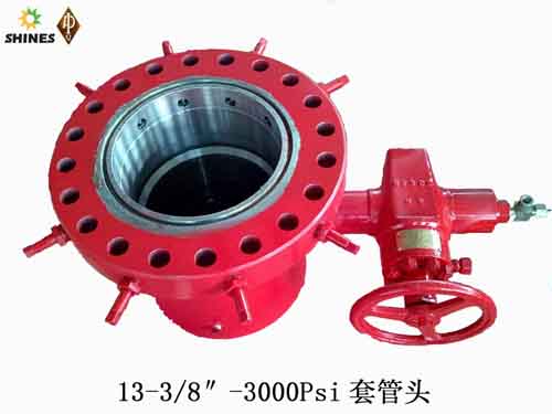 套管頭時連接套管和各種井口裝置的一種部件。用以支持技術(shù)套管和油層套管的重力,密封各層管間的環(huán)形空間,為安裝防噴器。油管頭和采樹油等上部井口裝置提供過度連接,并且通過套管頭本體上的兩個側(cè)口,可以進行補擠水泥,監(jiān)控井沉和注平衡液等作業(yè)。